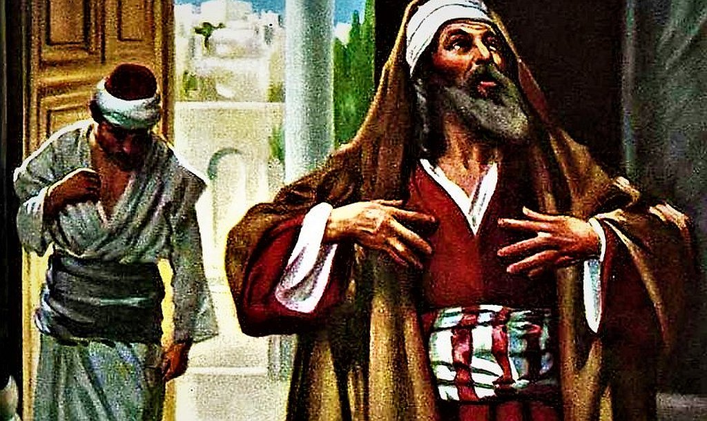 Tym natomiast, którzy byli przekonani o swej sprawiedliwości, a innymi gardzili, powiedział taką przypowieść: „Dwóch ludzi weszło do świątyni, aby się modlić: jeden był faryzeuszem, a drugi celnikiem. Faryzeusz skupiony na sobie tak się modlił: «Boże, dziękuję Ci, że nie jestem jak inni ludzie; zdziercy, niesprawiedliwi, cudzołożnicy, albo jak ten celnik. Poszczę dwa razy w tygodniu, daję dziesięcinę ze wszystkiego, co nabywam». Celnik natomiast stał z daleka i nie śmiał nawet oczu podnieść ku niebu, ale bił się w piersi, mówiąc: «Boże, bądź miłosierny dla mnie, grzesznego». Mówię wam: Ten odszedł do domu usprawiedliwiony, nie tamten. Bo każdy, kto się wywyższa będzie poniżony, a kto się uniża, będzie wywyższony” Łk 18, 9-14).