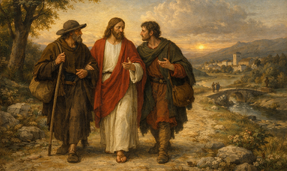 Tego samego dnia dwóch z nich szło do wsi zwanej Emaus, oddalonej sześćdziesiąt stadiów od Jeruzalem. Rozmawiali ze sobą o tym wszystkim, co się wydarzyło. Gdy tak rozmawiali i zastanawiali się, sam Jezus przybliżył się do nich i szedł z nimi. Lecz ich oczy były jakby przyćmione i nie mogli Go rozpoznać. Odezwał się do nich: „Cóż to za rozmowy prowadzicie ze sobą w drodze?” Przystanęli smutni. Jeden z nich, któremu na imię było Kleofas, podjął rozmowę: „Jesteś chyba jedynym z przebywających w Jeruzalem, który nie dowiedział się o tym, co się tam w tych dniach stało?”. Zapytał ich: „O czym?”. Wtedy Mu powiedzieli: „O Jezusie z Nazaretu, proroku potężnym w czynie i słowie przed Bogiem i wobec całego ludu. Wyżsi kapłani i nasi przywódcy wydali na Niego wyrok śmierci i ukrzyżowali Go. A my mieliśmy nadzieję, że to On wyzwoli Izraela. Tymczasem upływa już trzeci dzień od tego wydarzenia. Co więcej, niektóre z naszych kobiet wprawiły nas w zdumienie. Gdy wczesnym rankiem poszły do grobu, nie znalazły Jego ciała. Wróciły, mówiąc, że widziały aniołów, którzy zapewnili, że On żyje. Niektórzy spośród nas poszli do grobu i zastali wszystko tak, jak powiedziały kobiety, ale Jego nie widzieli”. Wtedy On im powiedział: „O nierozumni i leniwi w sercu! Nie wierzycie w to wszystko, co powiedzieli prorocy! Czyż Chrystus nie musiał tego cierpieć i wejść do swej chwały?”. I zaczynając od Mojżesza, przez wszystkich proroków, wyjaśniał im, co odnosiło się do Niego we wszystkich pismach. I zbliżyli się do wsi, do której zdążali, a On sprawiał wrażenie, że idzie dalej. Lecz oni nalegali: „Zostań z nami, gdyż zbliża się wieczór i dzień dobiega końca”. Wszedł więc, aby pozostać z nimi. Gdy zasiedli do stołu, On wziął chleb, odmówił modlitwę uwielbienia, połamał i dawał im. Wtedy otworzyły się im oczy i rozpoznali Go. Lecz On stał się dla nich niewidzialny. I mówili do siebie: „Czyż serce nie rozpalało się w nas, gdy rozmawiał z nami w drodze i wyjaśniał nam Pisma?”. W tej same chwili wybrali się i wrócili do Jezuzalem. Tam znaleźli zgromadzonych Jedenastu i innych z nimi, którzy mówili: „Pan prawdziwie zmartwychwstał i ukazał się Szymonowi. Także oni opowiadali o tym, co im się przydarzyło w drodze i jak dał się im poznać przy łamaniu chleba (Łk 24, 13-35).