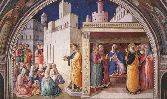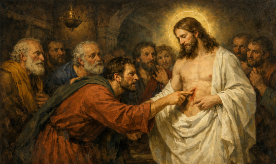 Gdy tego pierwszego dnia tygodnia zapadł wieczór, a tam , gdzie przebywali uczniowie, zamknięto drzwi z obawy przed Żydami, przyszedł Jezus, stanął w środku i pozdrowił ich: „Pokój wam”. A gdy to powiedział, pokazał im ręce oraz bok. Uczniowie uradowali się, że ujrzeli Pana. Jezus zaś odezwał się do nich ponownie: „Pokój wam! Jak Mnie posłał Ojciec, tak i Ja was posyłam”. Po tych słowach tchnął na nich i oznajmił: „Przyjmijcie Ducha Świętego. Tym, którym odpuścicie grzechy, są im odpuszczone; którym zatrzymacie, są zatrzymane”. Tomasz, zwany Didymos, jeden z Dwunastu, nie był razem z nimi, kiedy przyszedł Jezus. Pozostali uczniowie mówili więc do niego: „Zobaczyliśmy Pana”. On jednak odparł: „Nie uwierzę, jeśli nie ujrzę na Jego rękach śladów po gwoździach, nie włożę swego palca w miejsce gwoździ i nie umieszczę swojej ręki w Jego boku”. Po ośmiu dniach uczniowie znów byli wewnątrz i Tomasz razem z nimi. Mimo zamkniętych drzwi, Jezus wszedł, stanął w środku i pozdrowił ich: „Pokój wam”. Następnie rzekł do Tomasza” Unieś tutaj swój palec i zobacz moje ręce, podnieś też swoją rękę i włóż w mój bok. I przestań być niedowiarkiem, a bądź wierzącym”. Tomasz wyznał Mu w odpowiedzi: „Pan mój i Bóg mój!”. Jezus zaś rzekł do niego” Wierzysz, ponieważ Mnie ujrzałeś? Szczęśliwi ci, którzy nie zobaczyli, a uwierzyli” (J 20, 19-29).